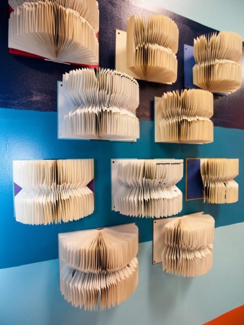 Cutreierați librăriile și magazinele după cărți de epocă ce pot fi utilizate ca artă de perete. Pentru a obține acest aspect, pliați paginile de carte până la jumătate în direcții opuse, și atașați-le de perete cu ajutorul unor șuruburi.