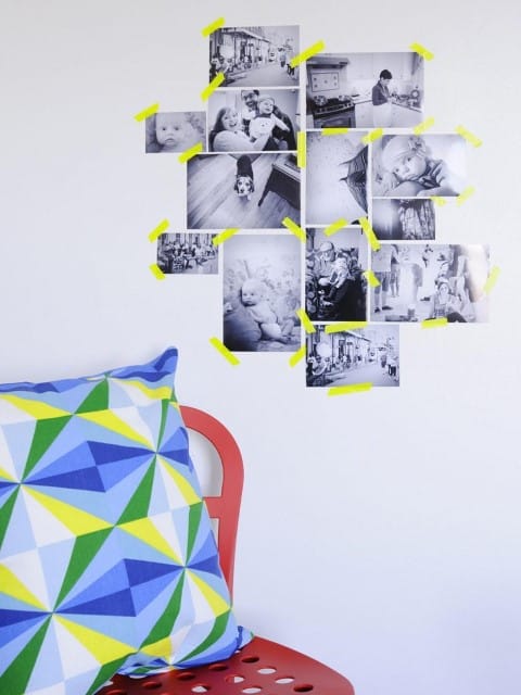 Adăugați un strop de culoare fotografiilor alb-negru cu bandă Washi în culori neon. Puneți fotografiile ca într-o galerie de artă sau creați diferite modele și forme geometrice.