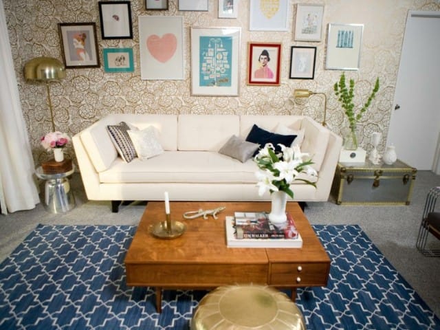 Tapetul floral metalic este o piesă declarativă în sine, o colecție de artă, care va da unei camere de zi un aspect glam de epocă.