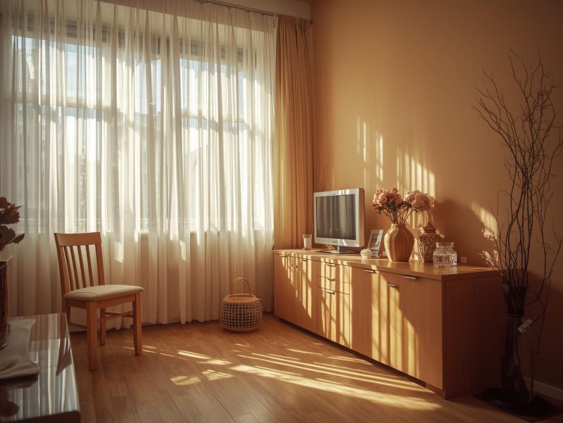 Soluția: culorile neutre, cum ar fi bejul gri, taupe sau verdele măsliniu, ajută la echilibrarea variației de lumină. Evită roșul sau portocaliul puternic, care pot amplifica senzația de căldură seara.