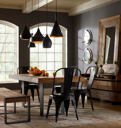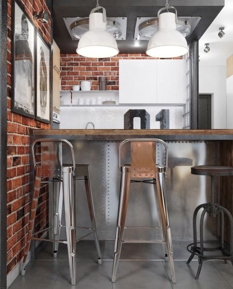 Amestecaţi şi potriviţi detaliile moderne cu farmecul industrial. Frumuseţea adăugării de elemente industriale într-o locuinţă este egală cu abilitatea de a amesteca şi a potrivi stilurile contemporane cu „vârsta” detaliilor arhitecturale din care vă inspiraţi. Încăperea în care puteţi realiza acest lucru cel mai simplu este bucătăria. Aparatele moderne din oţel inoxidabil lucios sau dulapurile cu panouri frontale pot împrumuta indicii din epoca industrială. Corpurile de iluminat pandantiv cu becuri Edison cu filament vizibil creează atât un aspect industrial cât şi retro, iar împreună cu obiecte, metale şi detalii rustice vă puteţi transforma bucătăria instantaneu.