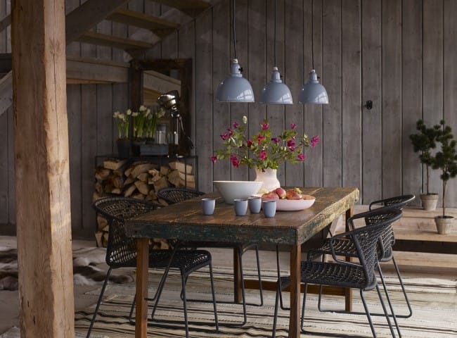 În bucătărie menţineţi lucrurile cât mai simple, folosiţi o masă înaltă cu scaune de bar cu picioare din fier de exemplu, în living amplasaţi o maşină de cusut, folosiţi lămpi de podea, în loc de plafoniere, alegeţi abajururi metalice cu tijă lungă, iar în dormitor optaţi pentru noptiere care imită butoaie vechi sau cabinete tip fişet.