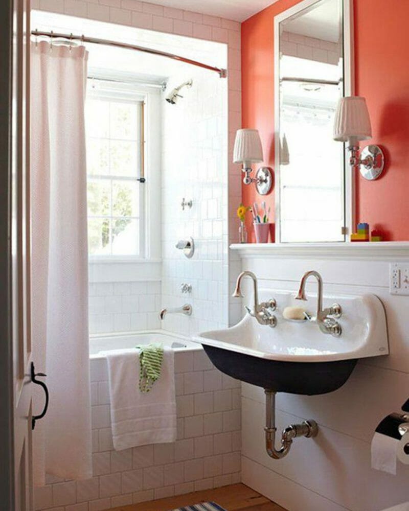 Dacă într-una dintre camerele mai mari vopsitul pereţilor se dovedeşte a fi mai mult decât aveţi nevoie sau dacă doriţi să încercaţi această nuanţă înainte de a vă angaja complet să o folosiţi, încercaţi-o într-una din camerele mai mici ale casei dvs., ca de exemplu baia. Băile şi bucătăriile sunt locuri excelente pentru a experimenta culoarea. Vopsiţi întreaga încăpere sau un singur perete de accent în coral pentru a crea o baie unică. Tapetele coral sunt, de asemenea, o alegere excelentă pentru combinarea culorilor cu celelalte modele în camerele mai mici.