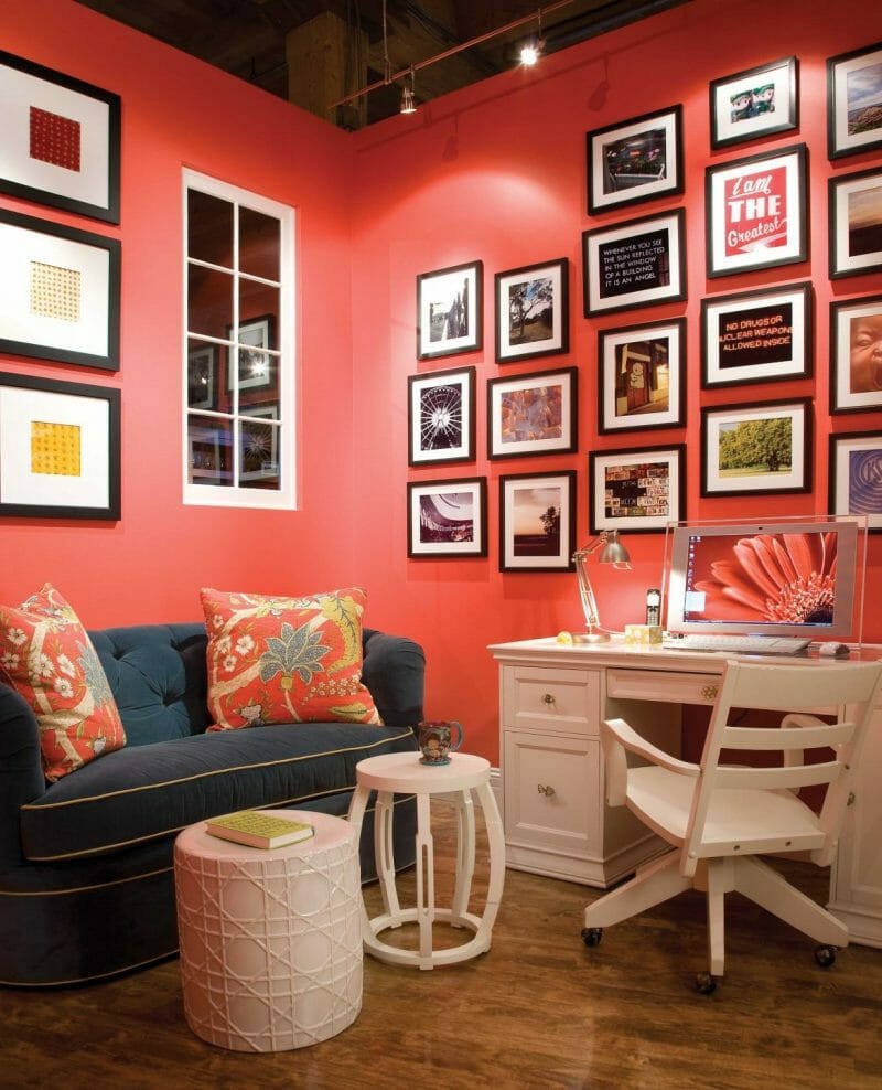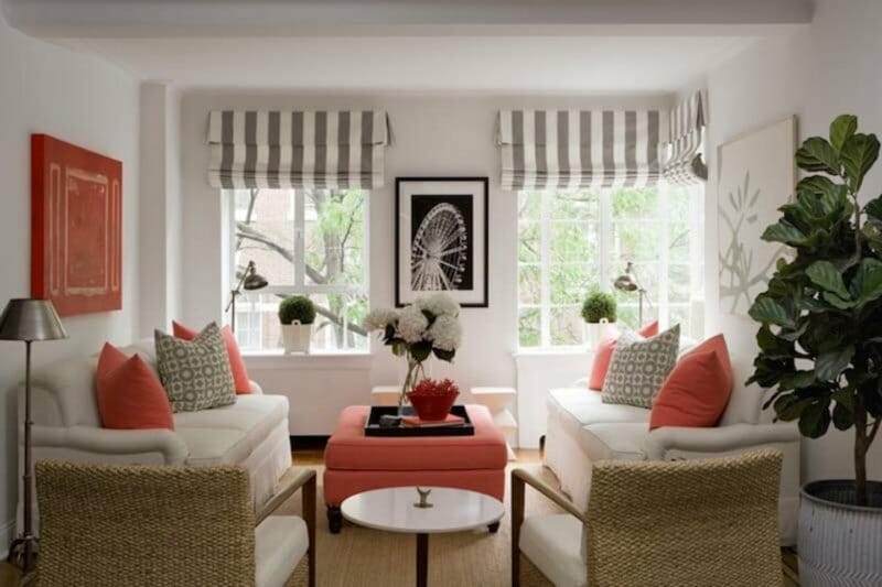 Mobilier coral – Una dintre cele mai uşoare (dar îndrăzneţe) căi de a încorpora această nuanţă distractivă şi îndrăzneaţă în casa dvs. este cu o piesă-declaraţie de mobilier. Pe un fundal neutru, o canapea într-un ton colorat de coral va adăuga o scânteie instantanee de interes, încălzind, în acelaşi timp, tonurile reci care domină spaţiul. Beneficiul de a merge pe ideea unei piese mari de mobilier în această nuanţă este faptul că o singură bucată va avea un impact imens, mai degrabă decât repetarea culorii prin mai multe accesorii, mai mici.
