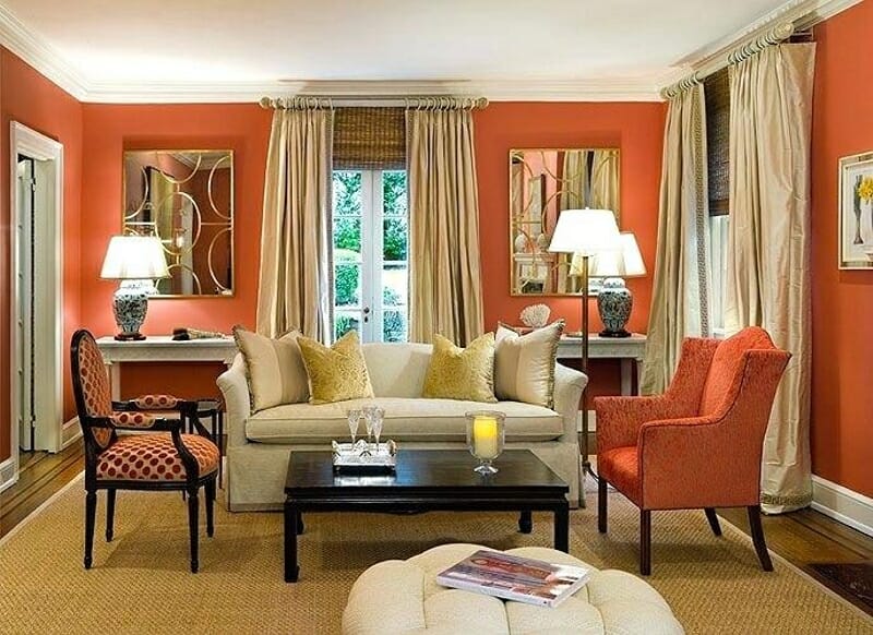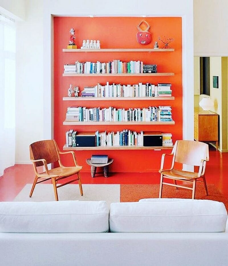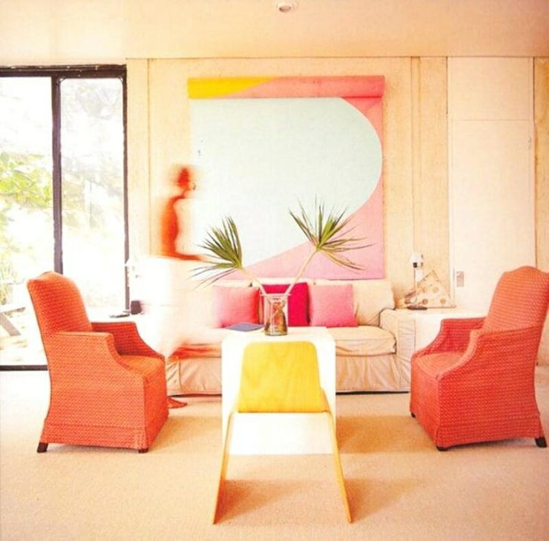 O căldură similară se poate obţine în camera de zi mai ales dacă această nuanţă de portocaliu şi roz este plasată strategic pe ţesături, ca draperii, cuverturi, covoare, pentru a spori efectul vibrant. Caracteristica de scenă care efectiv îţi ia ochii este opera de artă 3D pe canapea. Un covor geometric bej şi o imprimare uşoară pe canapea păstrează calmul paletei, astfel încât arta să strălucească cu adevărat. Dar când vine vorba de culoarea accentului perfect pentru a oferi camerei o dimensiune care se potriveşte cu complexitatea piesei de artă, coralul este nuanţa perfectă!