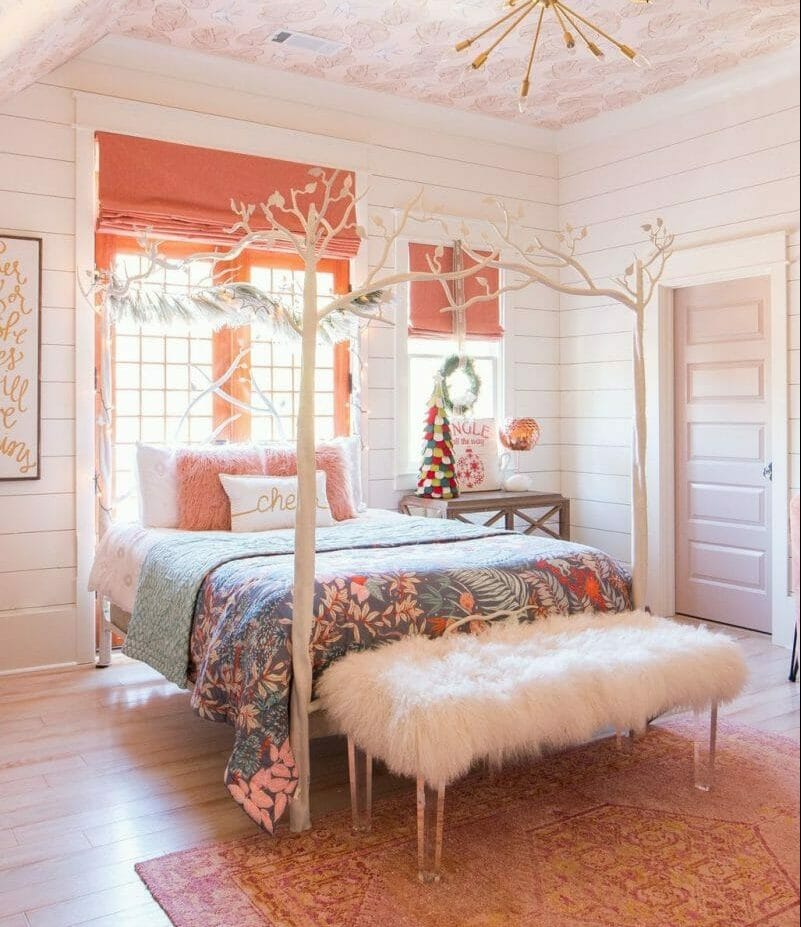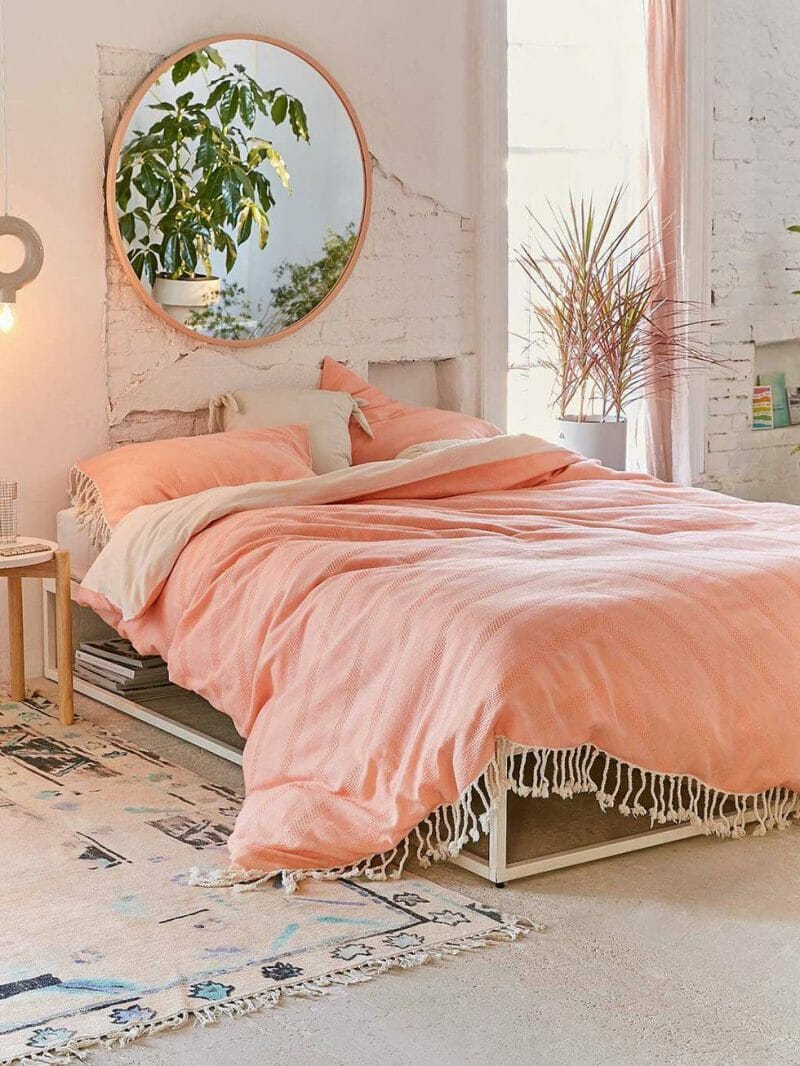 Cuverturi de pat – Nu este nimic mai luxos decât un pat stratificat. Luaţi în considerare o cuvertură în nuanţa coralului ca atingere finală.