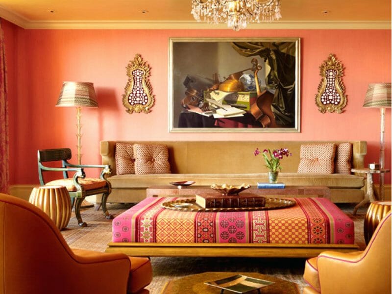 Uneori, cel mai bun mod de a celebra coralul este să-l alăturaţi unor nuanţe şi tonuri similare! Când vine vorba de design interior, vedem adesea coralul combinat cu nuanţe de roz. Nuanţele de roz şi somon se suprapun pentru a crea un efect de coral. Într-o cameră de zi în nuanţa coralului, atingerile stilului marocan vor face un spaţiu unic! O canapea otoman va face minuni într-o astfel de încăpere! Combinaţi nuanţele de trandafir, coral şi roşu adânc, pentru a intensifica culoarea pereţilor, care, cel mai indicat ar fi să rămână în nuanţe neutre. Şi totuşi, păstraţi tonnurile ceva mai deschise întrucât cele întunecate ar putea să se confunde între ele, mai ales dacă spaţiul nu este bine luminat.