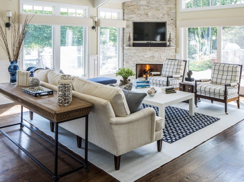 În cazul în care camera dvs. are un șemineu frumos, lăsați-l să devină punctul focal. În cazul în care camera de zi este singurul spațiu unde se poate amplasa un televizor, poziționați-l mai degrabă în lateralul șemineului și nu deasupra acestuia. În acest fel, puteți urmări în continuare emisiunile TV când doriți, iar atunci când aparatul nu este în uz, șemineul va fi centrul scenei.
