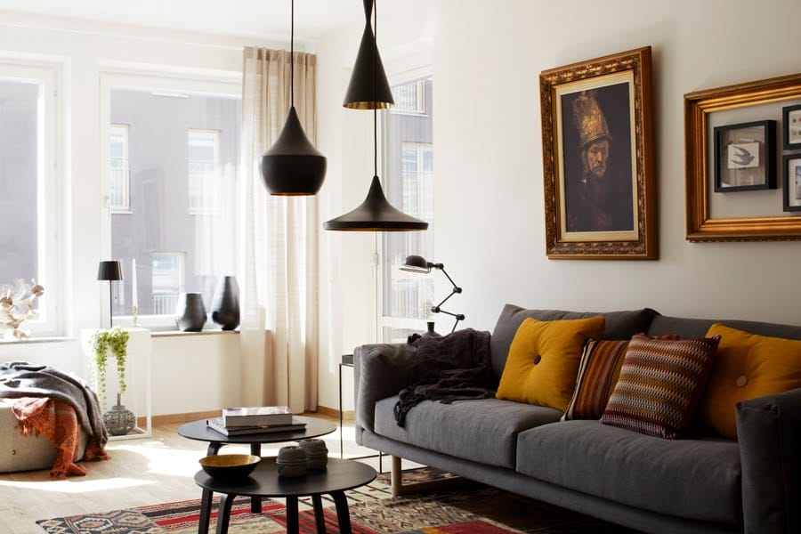 Sfat: Dacă vă place să rearanjați frecvent mobila în camera de zi, o lumină pandantiv ceva mai joasă nu este, probabil, cea mai bună alegere. Nimeni nu vrea să dea întâmplător cu capul într-un corp de iluminat în timp ce încearcă să traverseze camera!