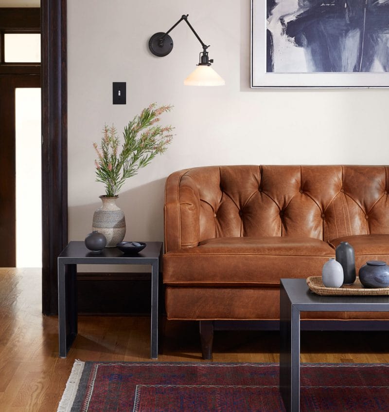 O lustră pendul supradimensionată aduce o schimbare de bun augur în amestecul obișnuit de lămpi de podea și sisteme montate pe tavan. O lumină scăzută agățată deasupra măsuței de cafea creează o zonă caldă și jovială de conversație care îmbie oamenii să se așeze și să uite să mai plece.