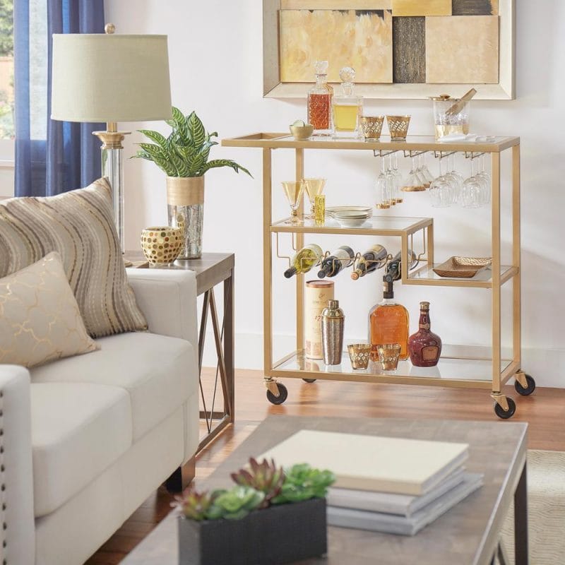 Doar pentru că sunt denumite cărucioare de bucătărie nu înseamnă că trebuie să vă plimbați de colo colo cu toată ”bucătăria” după voi! Înlocuiți sticlele și farfuriile cu o lampă, niște decorațiuni sau cărți. Transformați-l într-un cărucior pentru servirea ceaiului și a cafelei sau un loc pentru teancurile de CD-uri și viniluri preferate. Folosiți-vă creativitatea și puneți coșul să ”lucreze” pentru orice vă trece prin cap sau vă ajută în gospodărie.