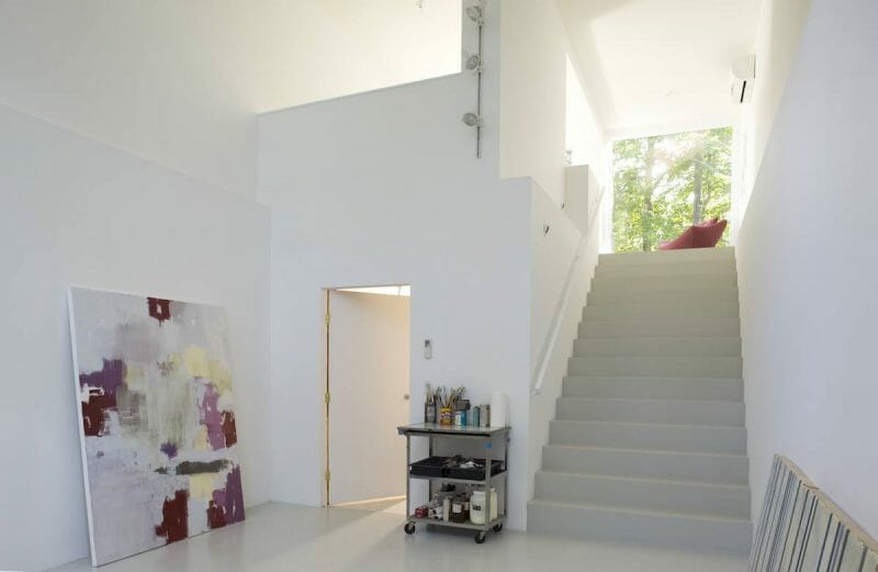 Această casă a fost construită cu un buget de 60.000 dolari ca fiind un studio de artă lângă casa proprietarului. Studioul a fost vopsit în culoarea cărbunelui pentru a se potrivi cu clădirea existentă şi a se încadra în mediul înconjurător.