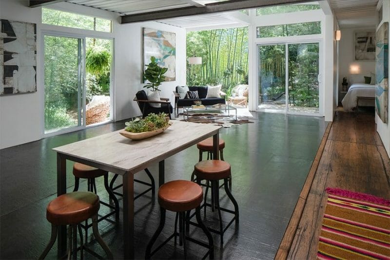 Un simplu spaţiu de 30 de metri pătraţi nu ar părea prea mare, doar dacă nu doriţi să creaţi o casă de oaspeţi minimalistă în curtea din spate. Reşedinţa privată, construită cu ajutorul arhitectului texan Jim Poteet, adaugă o notă de lux unui container de transport maritim reciclat, măsurând lăţimea de 2,4 metri şi o lungime de 12 metri.