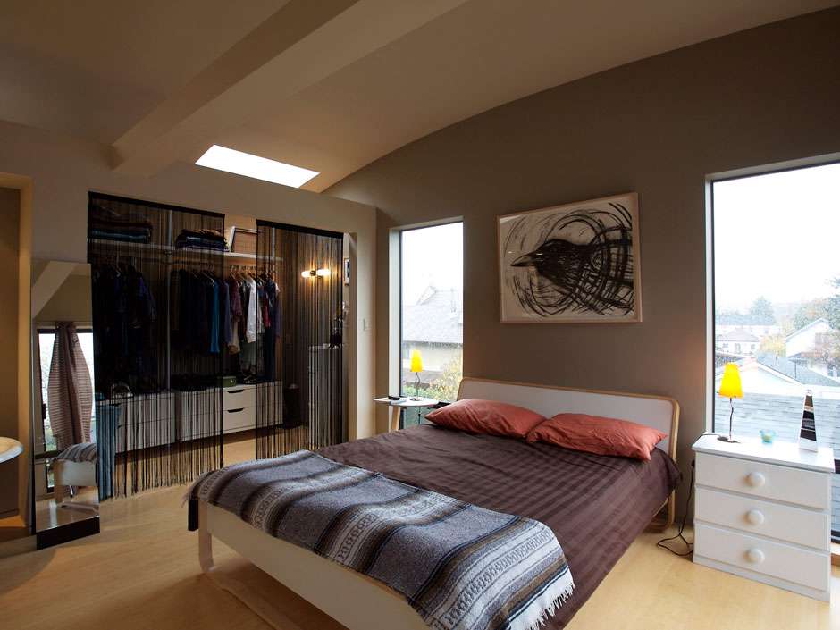 Containerul care creează plafonul dormitorului principal este prevăzut cu o înclinare de 60 de grade, oferind camerei o formă de pană, cu vedere către golf. Cei de la Budi Pradono Arhitects au folosit o tehnică asemănătoare de design la o altă reşedinţă privată din Indonezia, cunoscută pe plan local cu denumirea „Casa înclinată din Jakarta”.
