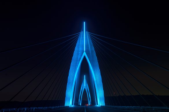 Home Constructii si amenajariArhitecturaCel mai lung pod hobanat din Africa „împodobit” cu led-uri colorate