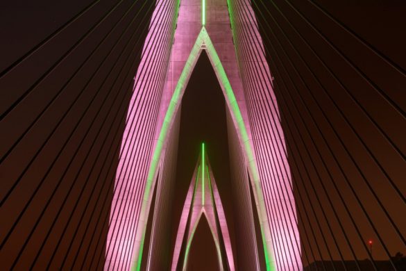 Cele două turnuri de 200 m înălțime și cele 160 de cabluri au devenit suportul perfect pentru cel mai nou și inovativ sistem de iluminat Philips. Operatorii acestuia pot alege dintre cele 16 milioane de culori pentru a crea un spectacol inedit de lumini și culori. Sistemul de iluminat utilizeaza tehnologia Philips Color Kinetics care, în afara spectacolului pe care îl oferă, oferă costuri mult reduse, cu până la 75%. Eficiența energetică a tehnologiei este net superioară tehnologiilor existente.