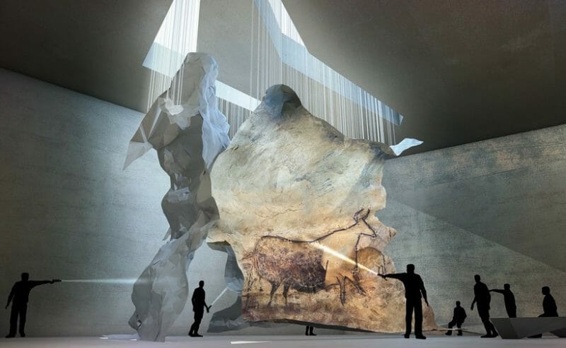 Noul centru de vizitatori de la Lascaux IV este o clădire de beton cu şanţuri joase, care parcă ies din pământ, un acoperiş din sticlă parţial deschis spre cer, în timp ce reproducerile peşterii Lascaux originale sunt luminate de raze de lumină naturală, pentru a prezenta operele de artă vechi de 17.000 de ani.
