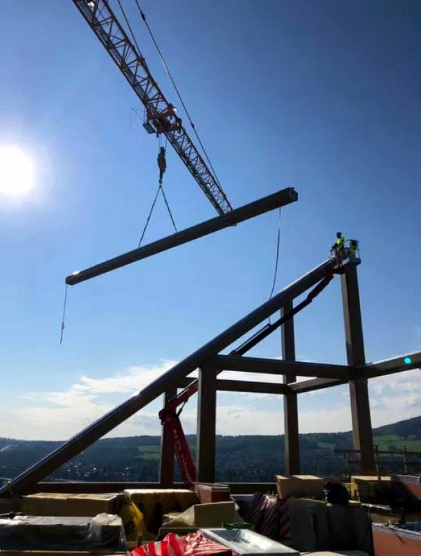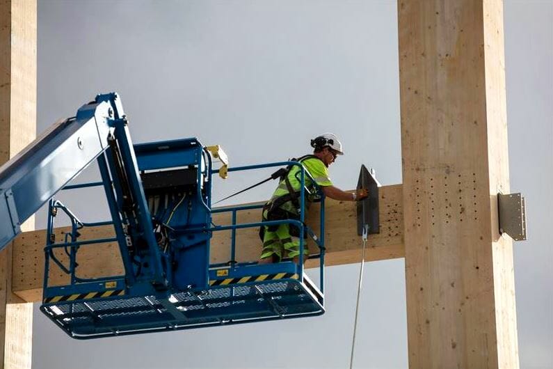 „În calitate de producători de glulam, ne străduim să folosim propriul nostru material în cea mai mare măsură posibilă. Cu toate acestea, Kerto LVL este un material superior pentru planşeurile superioare şi grinzile de capăt”, a continuat Abrahamsen, potrivit presei locale.