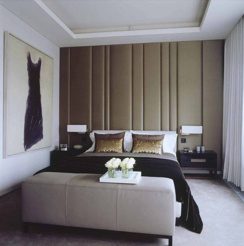 Numeroşi designeri confirmă faptul că panourile de perete tapițate sunt o soluţie simplă de decor, oferind în acelaşi timp oportunităţi de a adăuga interes vizual şi atractivitate dormitorului respectiv. Puteţi crea o atmosferă diferită în dormitor prin alegerea diferitelor ţesături, mătasea sau şifonul în tonuri blânde, vă vor da un aspect romantic, în timp ce pielea ar fi alegerea ideală pentru o atmosferă mai masculină, de exemplu.