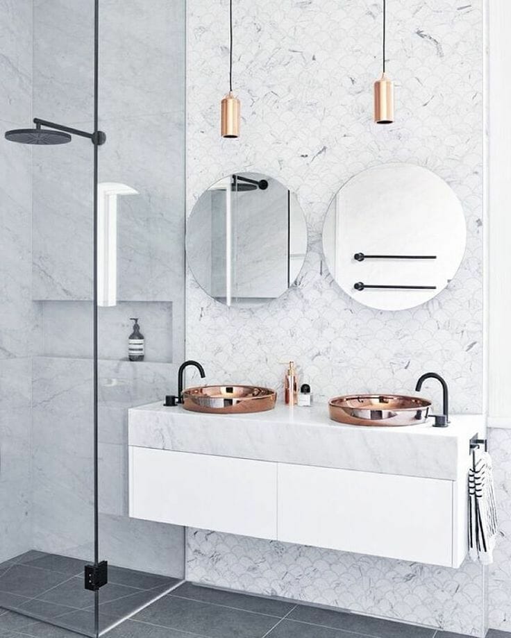 Dacă vă plac accentele metalice, atunci le puteţi folosi pe suprafeţe mai mari. Cada de baie metalică, pe lângă faptul că va oferi un aspect cu totul nou acestei încăperi, tinde să reţină căldura mai mult decât cada din ceramică. Acoperirea pereţilor cu elemente metalice de decor nu doar că va da strălucire camerei ci va reflecta şi amplifica lumina subtil. Designerii propun chiar vopseaua metalică pentru pereţi, aceasta reprezentând un nou trend în amenajările interioare. Mai mult, se observă o revenire a alamei despre care se credea până nu demult că este specifică anilor ’80.