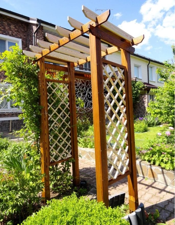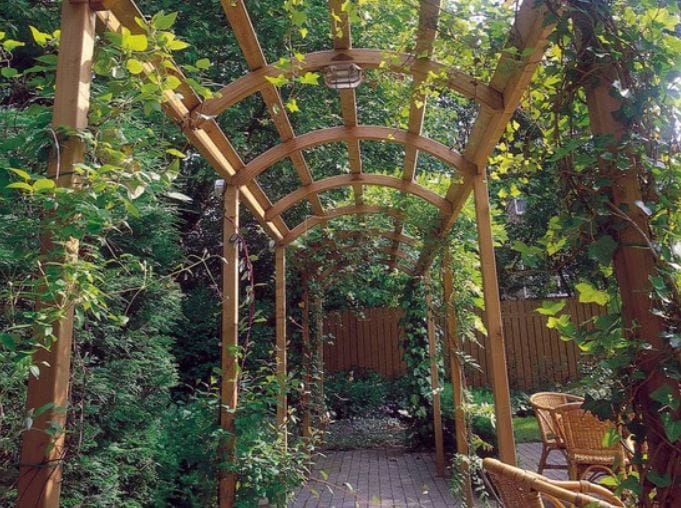 Arcada din lemn este relativ ieftină. Această variantă de arcadă de grădină este folosită de aproape toţi grădinarii. Principalul avantaj al acesteia este construcţia simplă şi rapidă. Dacă există un ciocan, ţinte şi îndemânare, atunci puteţi face o capodoperă de arcadă, capabilă să atragă atât admiraţia, cât şi invidia vecinilor. Arcada de grădină realizată cu propriile sale mâini poate fi vopsită în orice culoare, dar cel mai bine arată lăcuită cu un lac incolor.