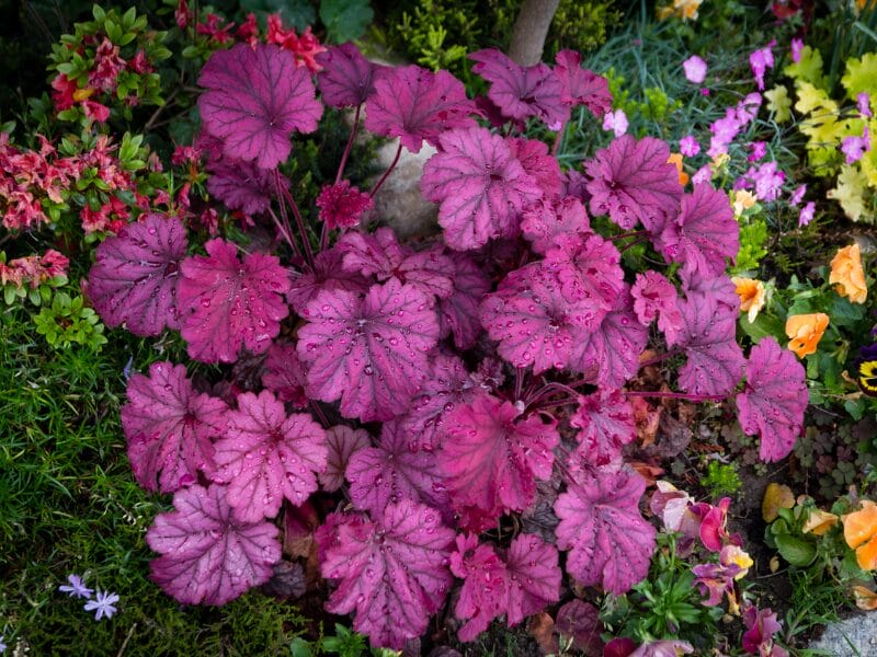 Heuchera, cunoscută și sub numele de „clopoței purpurii”, este o plantă perenă care se distinge prin frunzele sale atractive, deseori în nuanțe de roșu, bronz sau verde. Aceste plante sunt ideale pentru a adăuga contrast și culoare în zonele umbrite ale grădinii. În climatul românesc, heuchera crește bine în zonele cu umbra parțială, preferând solurile bine drenate. Cu o gamă largă de soiuri, heuchera poate fi combinată cu alte plante umbrite pentru a crea un peisaj bogat în texturi și culori.