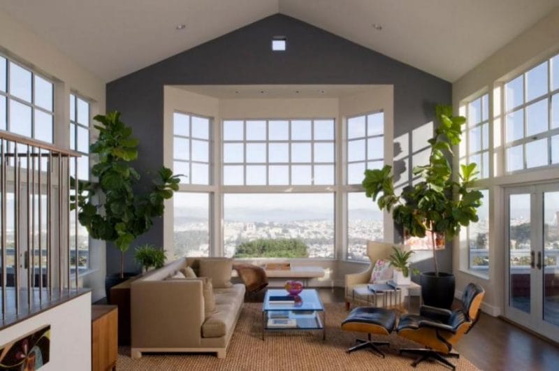 Încăperile cu tavane înalte sau camerele cu înălţime dublă oferă o mai mare flexibilitate atunci când vine vorba de plante de talie înaltă în decorul interior. Există chiar opţiunea de a creşte chiar plante căţărătoare şi a le lăsa să acopere pereţii, fiind conduse către lumina zilei ce poate intra în încăpere printr-un luminator.