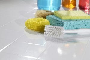 O reţetă eficientă pentru a curăţa gresia şi faianţa se compune din 4 căni de apă caldă, jumătate de cană cu bicarbonat de sodiu şi un sfert de cană cu oţet alb. Se amestecă apa caldă, bicarbonatul şi oţetul într-un recipient, soluţia putând fi pulverizată cu ajutorul unei sticle cu atomizor sau aplicată pe o cârpă. Puteţi şterge gresia, faianţa şi chiar şi cada. Nu este nevoie sa frecaţi mai mult decât dacă aţi utiliza o soluţie din comerţ.